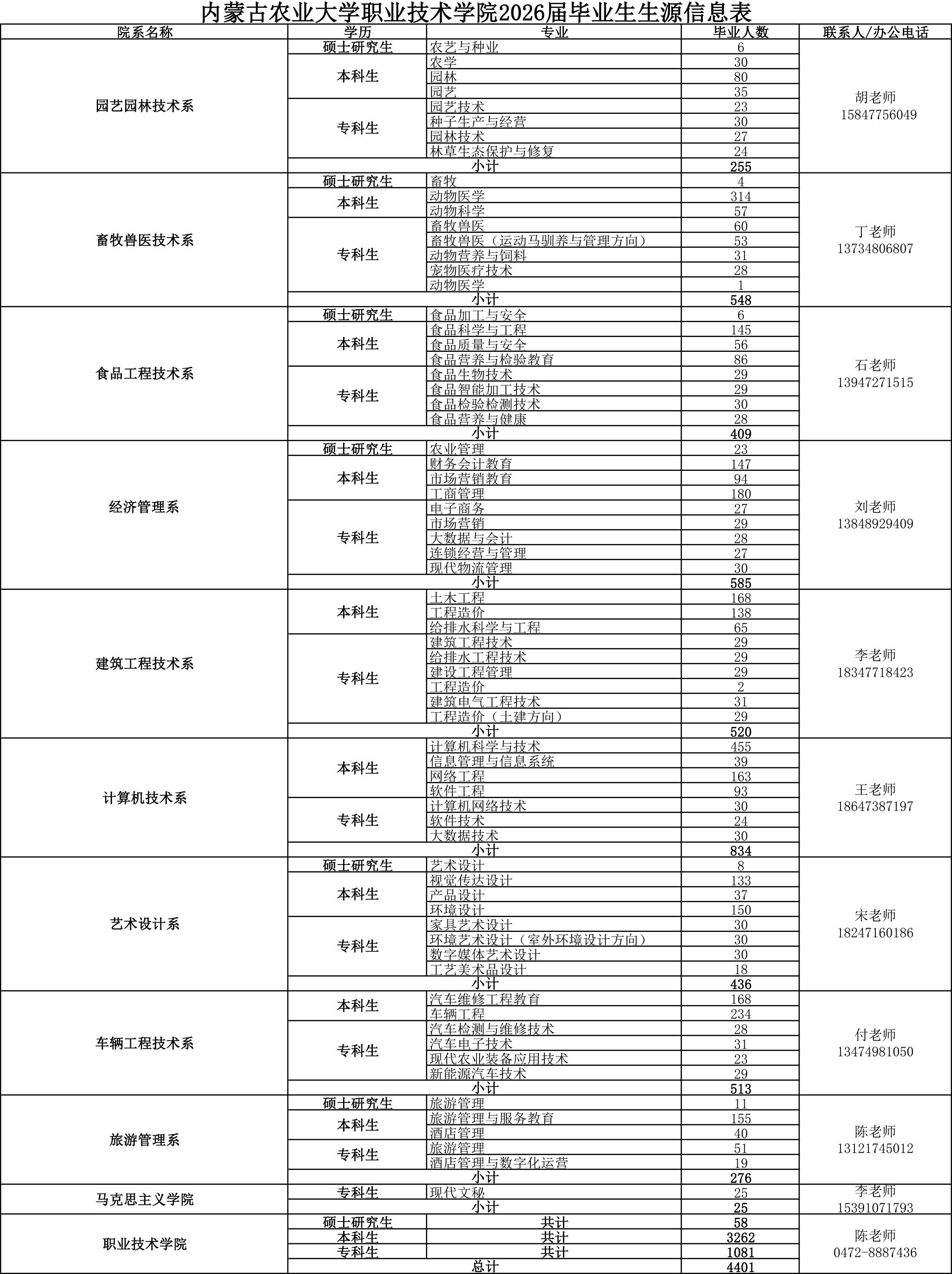 详见“内蒙古农业大学职业技术学院2026届毕业生生源信息表”。